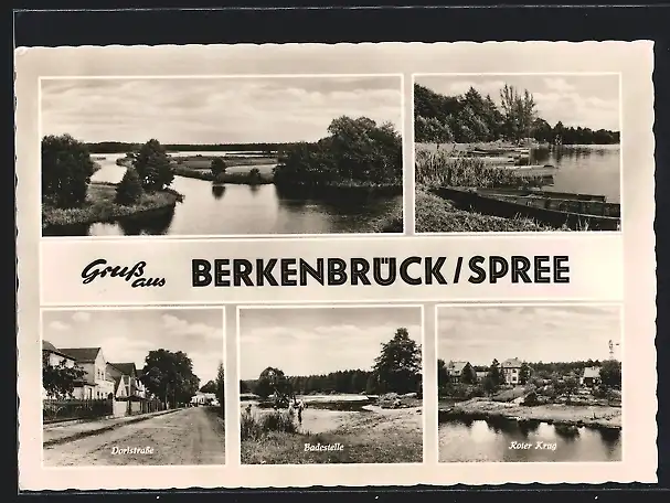 AK Berkenbrück / Spree, Dorfstrasse, Roter Krug, Badestelle