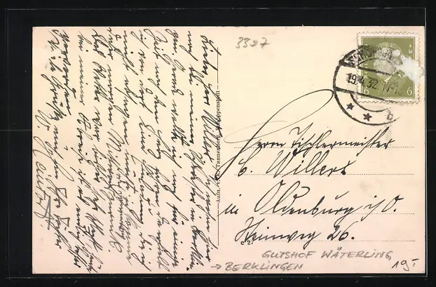 gelaufen 1932, rückseitig Klebe- und Papierreste, guter Zustand