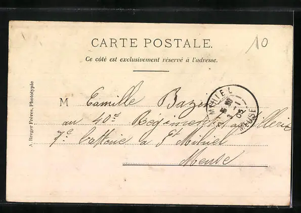 Personenbezogene Daten auf der Rückseite der Karte wurden durch blauen Textmarker unkenntlich gemacht. Die blauen Stellen sind auf die Vorderseite durchgeweicht und wirken sich negativ auf das Postkartenfoto aus