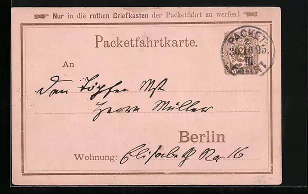AK Berlin, 1895, Private Stadtpost Berliner Packetfahrt
