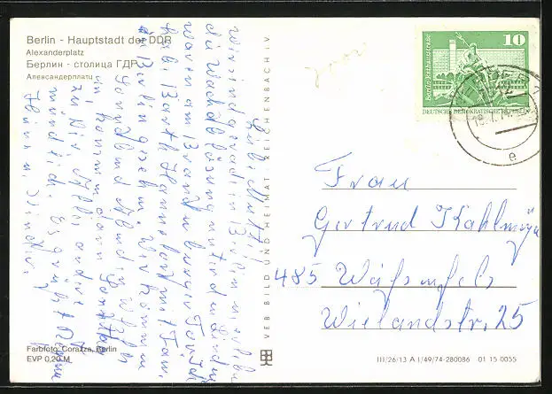alte Ansichtskarte, gelaufen 1974, Eckknick links oben, guter Zustand