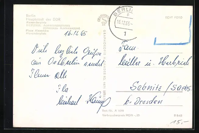 alte Ansichtskarte, gelaufen 1965, guter Zustand