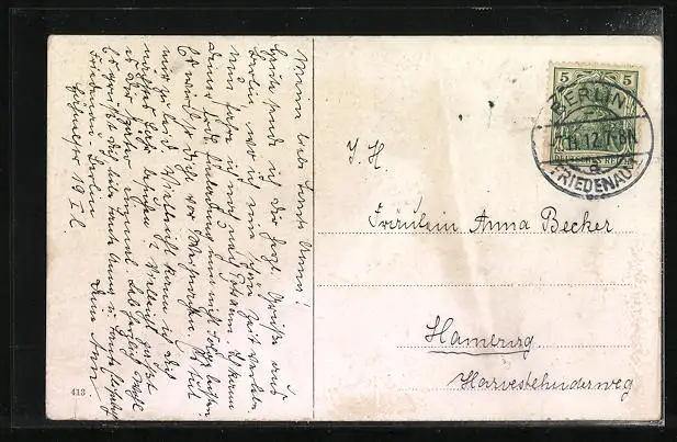 alte Ansichtskarte, gelaufen 1912, Ecken bestoßen, Stempelspur, guter Zustand