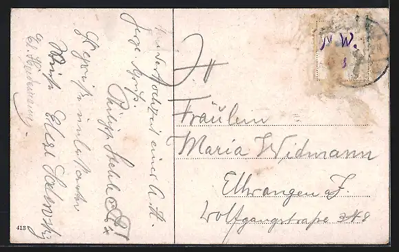 alte Ansichtskarte, gelaufen, Briefmarke entfernt, Stempelspur, guter Zustand
