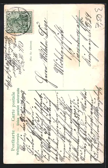 gelaufen 1907, kl. Einriss li. Mitte, guter Zustand