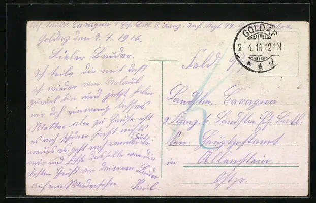 alte Ansichtskarte, gelaufen 1916, guter Zustand