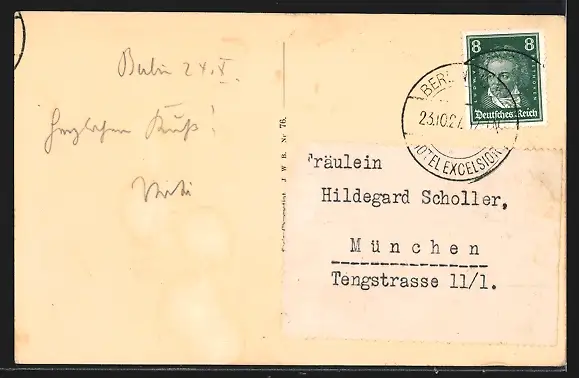 gelaufen 1927, rückseitig Klebe- und Papierreste, guter Zustand