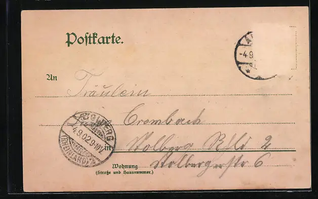 alte Ansichtskarte, gelaufen 1902, Briefmarke entfernt, rückseitig Oberflächenschaden, guter Zustand