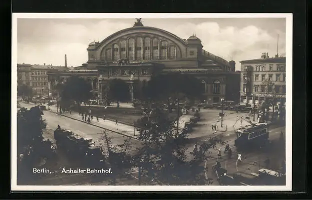 AK Berlin, Anhalter Bahnhof mit Strassenbahn