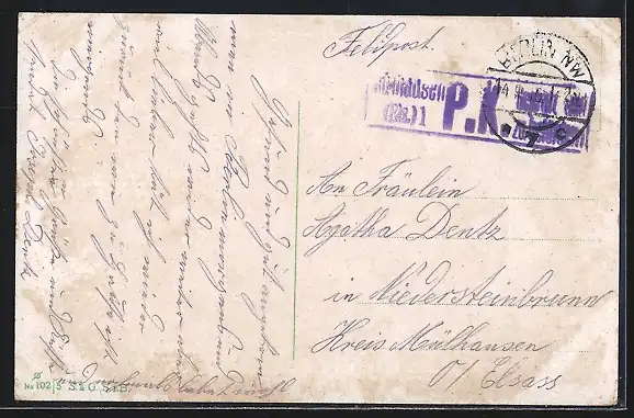 gelaufen 1916, Eckknicke oben, Albumspuren, guter Zustand