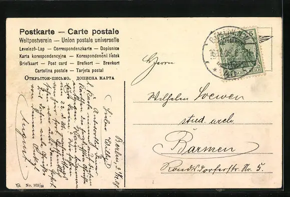 alte Ansichtskarte, gelaufen 1908, guter Zustand