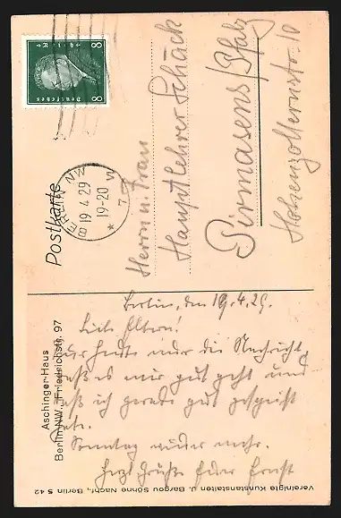 alte Ansichtskarte, gelaufen 1929, Stempelspur, guter Zustand