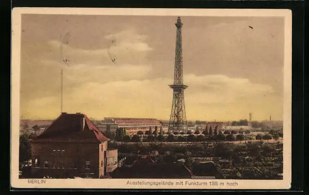 AK Berlin, Ausstellungsgelände mit Funkturm, Abendstimmung