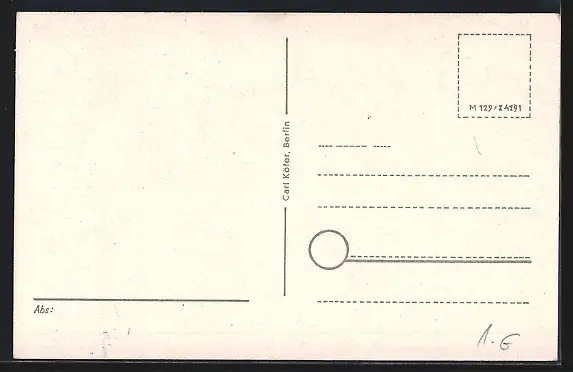 Personenbezogene Daten auf der Rückseite der Karte wurden durch blauen Textmarker unkenntlich gemacht. Die blauen Stellen sind auf die Vorderseite durchgeweicht und wirken sich negativ auf das Postkartenfoto aus
