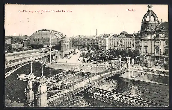 AK Berlin, Bahnhof Friedrichstrasse und Schlütersteg