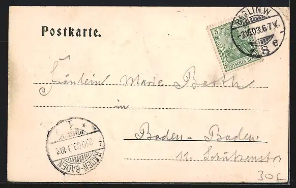 alte Ansichtskarte, gelaufen 1903, guter Zustand