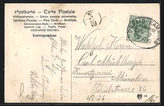 alte Ansichtskarte, gelaufen 1907, guter Zustand