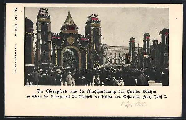 AK Berlin, Besuch Kaiser Franz Josef I. von Österreich, Ehrenpforte u. Ausschmückung des Pariser Platzes