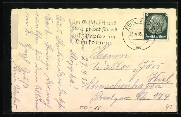 alte Ansichtskarte, gelaufen 1935, rückseitig Klebe- und Papierreste, guter Zustand