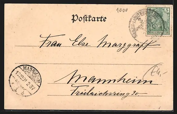 alte Ansichtskarte, gelaufen 1901, guter Zustand