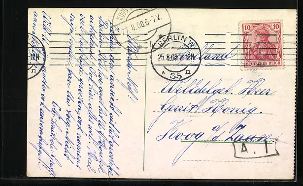 alte Ansichtskarte, gelaufen 1908, Stempelspur, guter Zustand