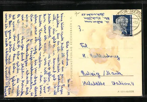alte Ansichtskarte, gelaufen, Briefmarke tw. entfernt, rückseitig Klebe- und Papierreste, guter Zustand