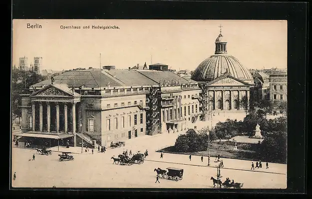 AK Berlin, Blick auf Opernhaus und Hedwigkirche