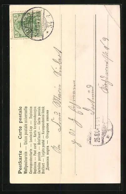 alte Ansichtskarte, gelaufen 1904, Eckknick li. oben, guter Zustand