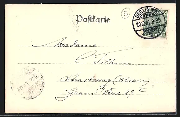 alte Ansichtskarte, gelaufen 1901, Stempelspur, guter Zustand
