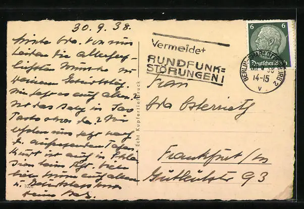 alte Ansichtskarte, gelaufen 1938, Eckknick li. unten, guter Zustand