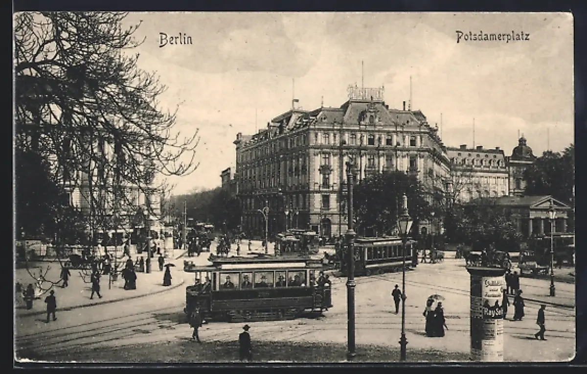 AK Berlin, Blick auf den Potsdamer Platz, Strassenbahn