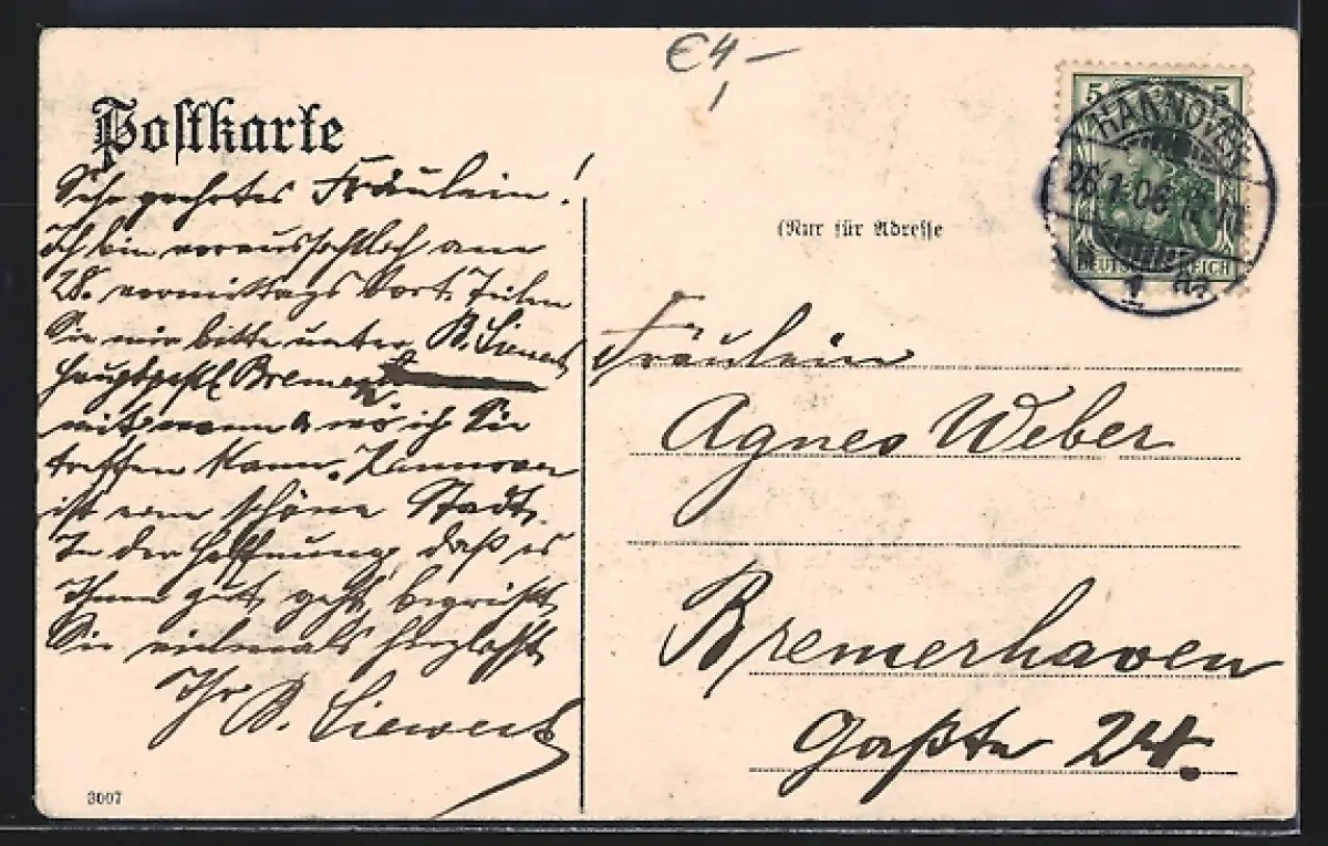 alte Ansichtskarte, gelaufen 1906, guter Zustand