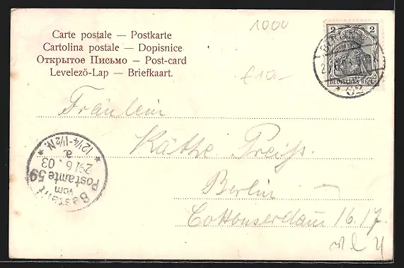 alte Ansichtskarte, gelaufen 1903, guter Zustand