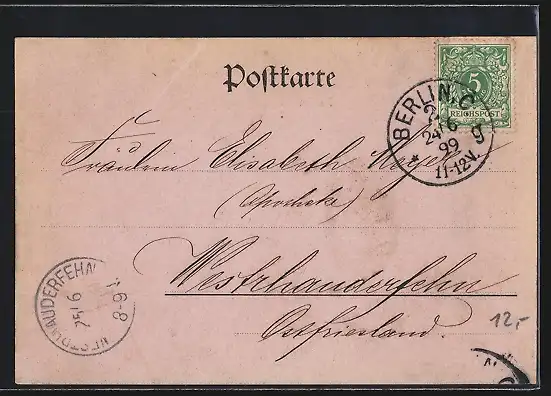 alte Ansichtskarte, gelaufen 1899, guter Zustand