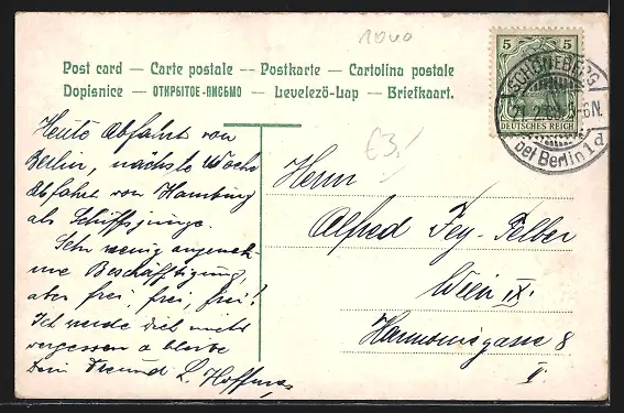 alte Ansichtskarte, gelaufen 1908, guter Zustand