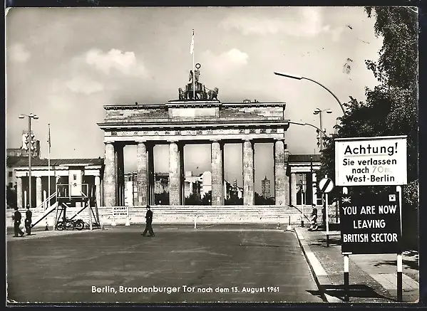 AK Berlin, Brandenbeurger Tor nach dem 13. August 1961, Grenze