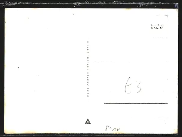 Personenbezogene Daten auf der Rückseite der Karte wurden durch blauen Textmarker unkenntlich gemacht. Die blauen Stellen sind auf die Vorderseite durchgeweicht und wirken sich negativ auf das Postkartenfoto aus