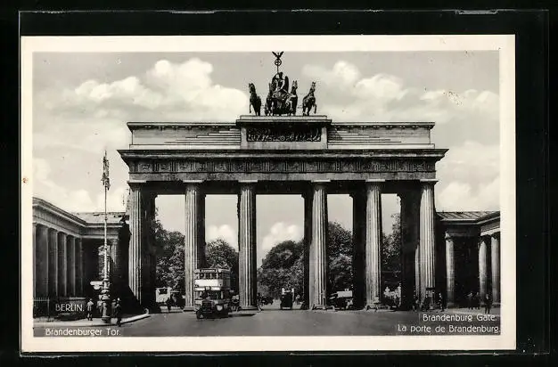 AK Berlin, Brandenburger Tor mit Doppeldeckerbus