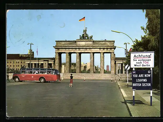 AK Berlin, Brandenburger Tor mit Mauer