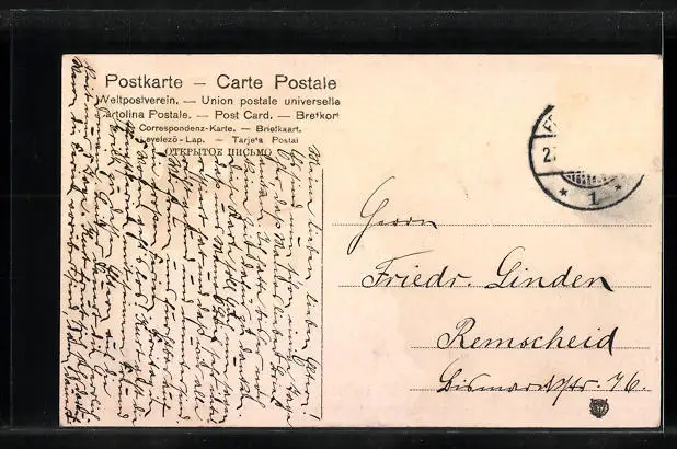 alte Ansichtskarte, gelaufen, Briefmarke entfernt, sonst guter Zustand