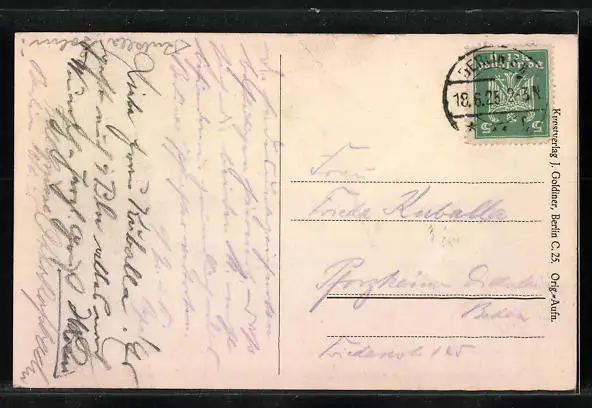 alte Ansichtskarte, gelaufen 1925, Bugspur oben mittig, sonst guter Zustand