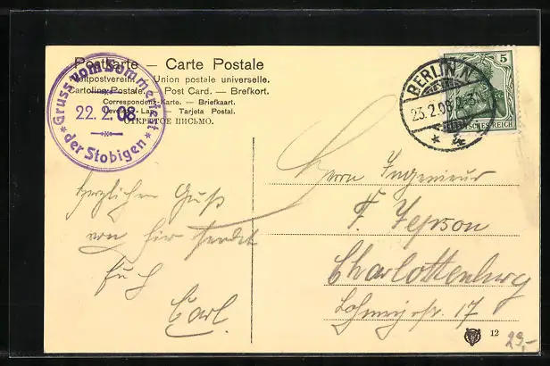 alte Ansichtskarte, gelaufen 1908, guter Zustand
