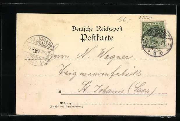 alte Ansichtskarte, gelaufen 1900, guter Zustand