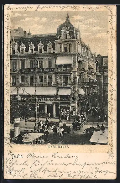 AK Berlin, Café Bauer und Litfasssäule