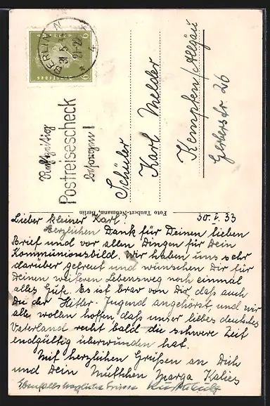 alte Ansichtskarte, gelaufen 1933, Stempelspur, guter Zustand