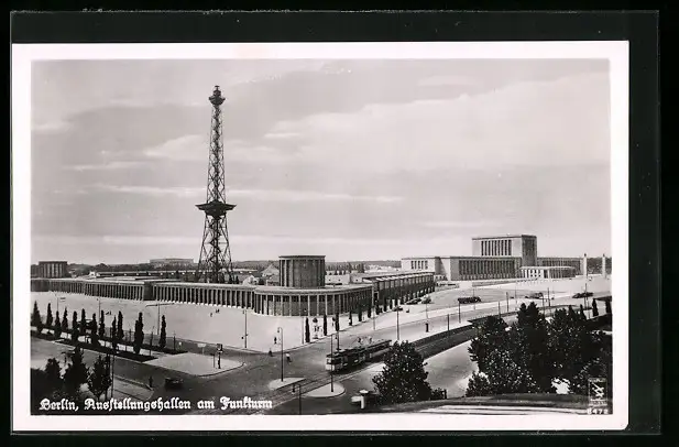 AK Berlin-Charlottenburg, Ausstellungshallen am Funkturm, Strassenbahn