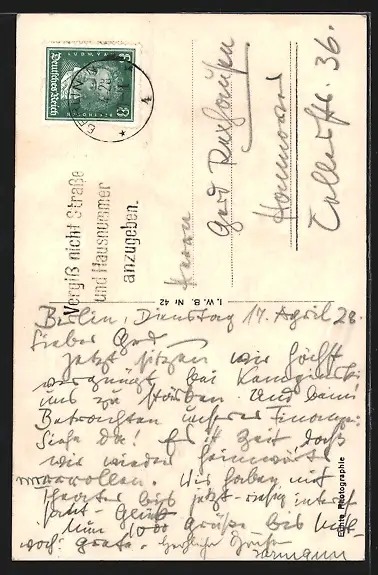 alte Ansichtskarte, gelaufen 1928, guter Zustand