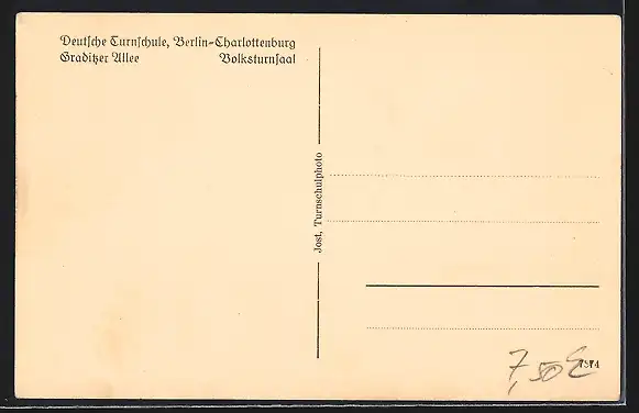 AK Berlin-Charlottenburg, Deutsche Turnschule, Graditzer Allee, Volksturnsaal, Innenansicht