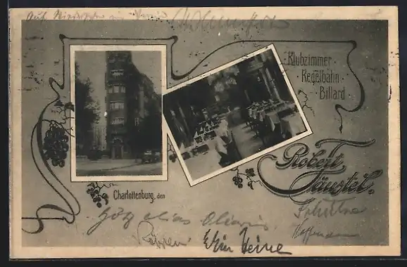 AK Berlin-Charlottenburg, Gasthaus mit Kegelbahn und Billard