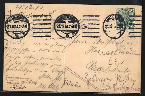 alte Ansichtskarte, gelaufen 1913, Stempelspur, guter Zustand